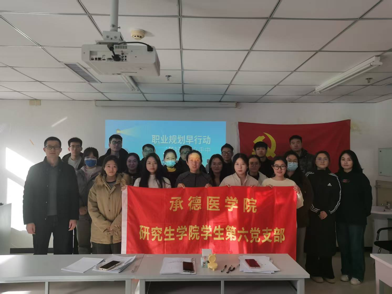 为深入学习贯彻党的二十届四中全会精神,搭建师生交流合作平台,2025年11月30日,研究生学院学生第六党支部联合承德市中心医院骨科党支部在承德市中心医院全科培训基地教学楼503室,开展“职业规划早行动,美好未来在手中”结对共建活动。 活动聚焦“理论学习+职业赋能”双主线,分阶段有序推进。承德市中心医院骨科党支部赵胜军老师带领大家学习了党的二十届四中全会精神,并深度结合高校毕业生就业、创业政策、医学专业职业发展进行详细讲解。讲解后的答题环节中,师生党员分组协作,踊跃抢答,激烈比拼,在以赛促学、以学促思中深化对全会精神的理解,凝聚校院协同育人共识。 职业规划分享环节,赵胜军立足于医学专业特色,围绕学术深造、临床就业、考公创业等核心方向,系统分享职业选择的底层逻辑与实践经验,针对研究生群体普遍关注的简历优化、科研能力转化、职场角色适应等问题,结合临床工作实例逐一拆解,助力研究生破解职业发展困惑、明晰成长路径。学生党员代表范嘉琦主动分享个人职业规划与现阶段迷茫,通过互动交流,大家在思想碰撞中明晰发展路径,坚定了“立足专业、服务社会”的信念。 此次结对共建活动以党建为引领,以职业规划为纽带,推动了党的二十届四中全会精神在师生群体中入脑入心、走深走实;两支部将持续深化共建合作机制,策划开展更多贴合医学专业特色,契合师生成长需求的共建活动,引导研究生扎根专业学习,强化实践锻炼,投身医疗卫生事业。